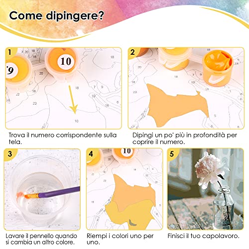 ✔ Stile gratuito: puoi decidere il turno di disegno in base al tuo favore personale o a turno dei numeri. Puoi scegliere di non mescolare vernice o miscelare. Dipingi il tuo stile e crea una bella opera d'arte con la tua mano. Concentrati su questo dipinto, goditi una giornata meravigliosa!