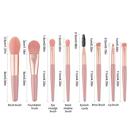 TouGod 8 Pezzi Set di Pennelli da Trucco con Borsa in Pelle Pennello Professionale Portatile da Viaggio per Fondotinta Cipria Correttore Fard e Occhi (dark pink)