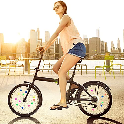 【Alta qualità】,72pz 36 perline luminose e 36 ruote a forma di stella, idea regalo per ragazze e ragazzi,Le decorazioni per Raggi di Biciclette per ragazze sono realizzate in plastica di alta qualità, sono resistenti alla pioggia e al sole e possono essere utilizzate per molto tempo Le perline di plastica sono facili da attaccare ai raggi della bicicletta, belle e pratiche.