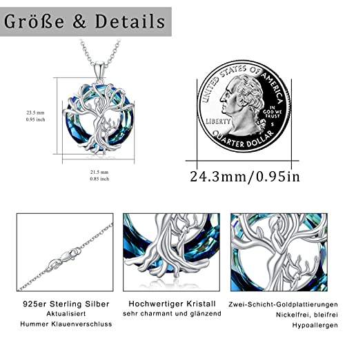 Collana con albero della vita, taglia grande: 1,08 pollici x 0,78 pollici, cerchio blu Dimensione cristallo: 20 mm x 20 mm, con catene ROLO da 18 + 2 pollici.