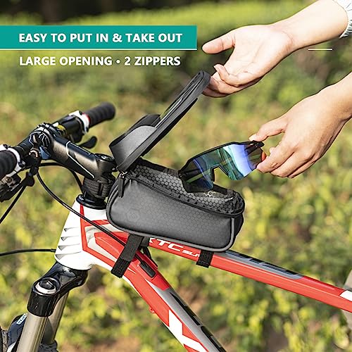 TOURSLOV Borsa Telaio Bici Impermeabile con Copertura Antipioggia, Borsello da Manubrio Tubo Anteriore per MTB Bicicletta da Corsa, Porta Telefono Cellulare per Telefono Fino a 6,8"