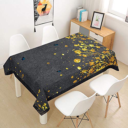 Tovaglia Antimacchia Rettangolare Quadrata, Morbuy Idrorepellente Copritavolo Elegante Stampa Moderno Decorativo per Cucina Soggiorno Giardino Feste (Rami d'oro,140x200cm)