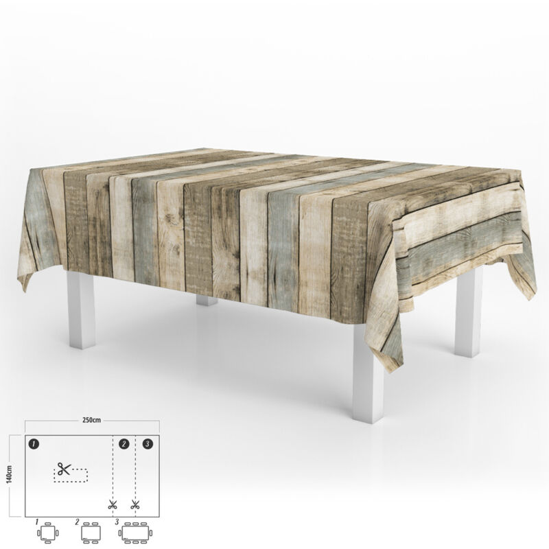 Tovaglia Tela Cerata Rettangolare Tavole di Legno PVC Impermeabile Antimacchia 140 x 250 cm. Ritaglio per uso interno ed esterno - Misure: 140 x 250 cm. - Tovaglia in tela cerata stampata nei colori caldi del grigio e del marrone, con forme di assi di legno. Design moderno ed elegante per ogni occasione. - Può essere facilmente tagliato o adattato a qualsiasi dimensione, per adattarlo a qualsiasi tipo di tavolo, superficie o mestiere. - Protegge il tavolo da schizzi, cadute, graffi e macchie. - È impermeabile e antiscivolo. - Forte e durevole, adatto sia per uso esterno che interno. - Realizzato in PVC e ricoperto di morbido feltro sul retro. - Si pulisce facilmente con un panno umido. - Non adatto per l'uso in lavatrice, asciugatrice o ferro da stiro. - Ideale per tavoli in soggiorno, cucina, sala da pranzo, terrazza o giardino. - Perfetto per proteggere mobili, tavoli o superfici, sia all'interno che all'esterno della casa. - Per ridurre le pieghe nella tovaglia, utilizzare un