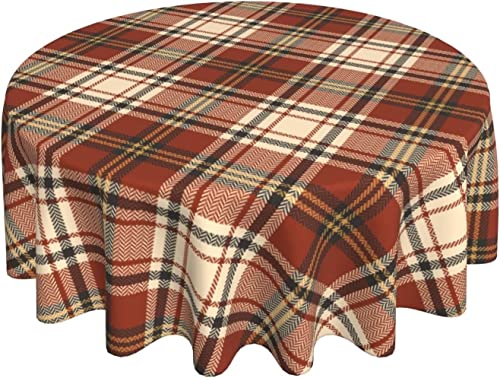 Tovaglia Autunnale Scozzese Rotonda 60 Pollici Autunno Colore Scuro Stampa A Quadri Tovaglia Decorativa Del Ringraziamento con Decorazione Antirughe Antipolvere per La Cucina di Casa Sala da Pranzo