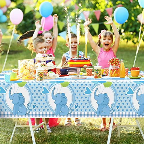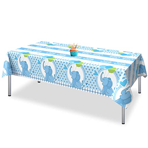 Tovaglia per baby shower, usa e getta, in PVC e plastica blu, con elefante, rettangolare, 52 x 87 pollici, per bambini ragazzi elefante baby shower tema compleanno genender Reveal Party decorazioni