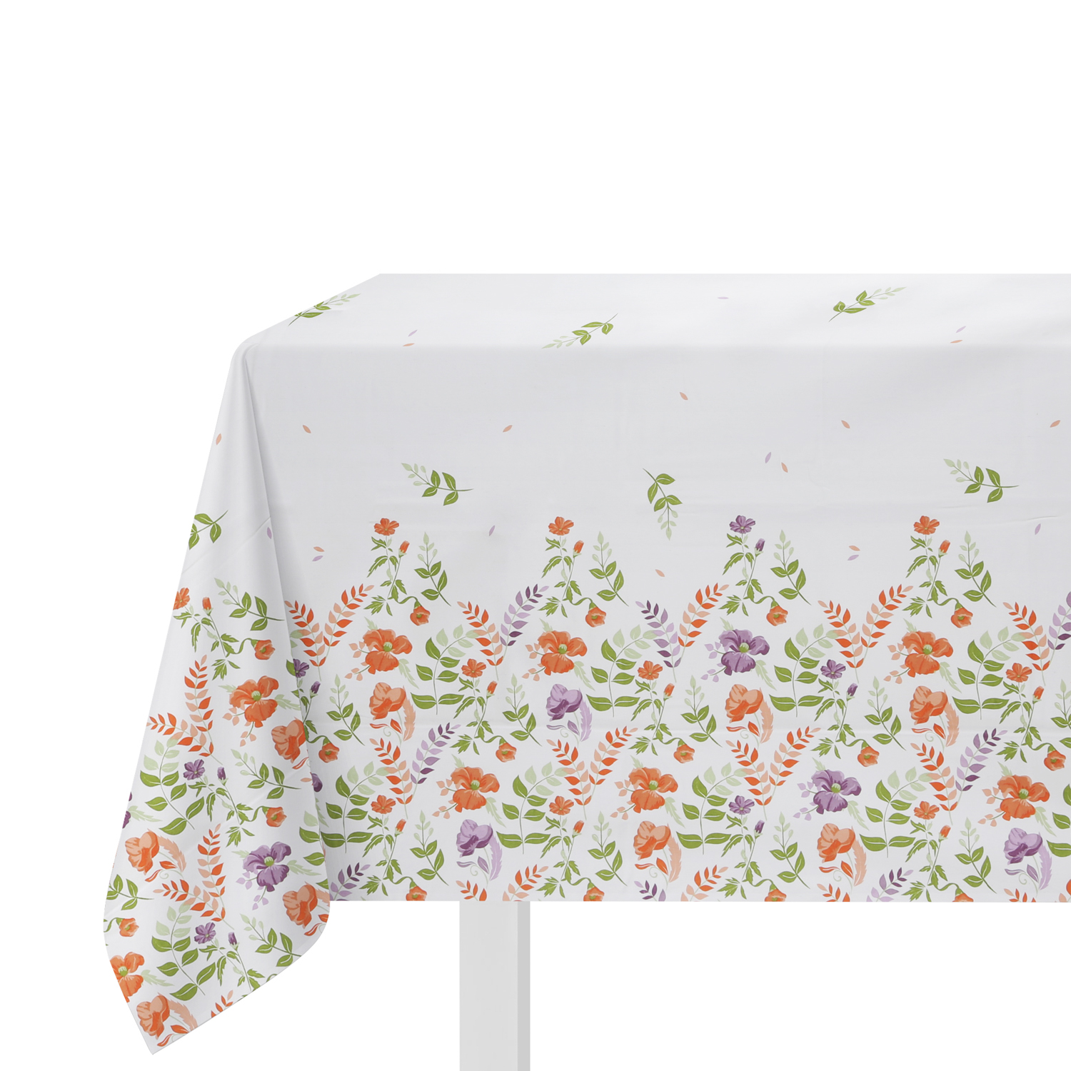 Floral è la nuova linea tessile cucina di caratterizzata da un fresco e vivace decoro floreale. Aggiungi un dettaglio naturale e di colore sulla tua tavola con la tovaglia in misto cotone dal tessuto bianco con decoro di fiori arancioni e rosa. Perfetta per apparecchiare una tavola informale per 6 persone. Lavabile in lavatrice con ciclo a 30°. Misure 140x180 cm.