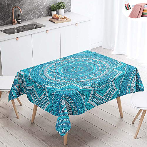 Tovaglia Idrorepellente Antimacchia, Morbuy Rettangolare Quadrata 3D Mandala Impermeabile Lavabile Copritavolo Tovaglia per Cucina Soggiorno Giardino Feste Decorazione (Teal Modern,140x140cm)