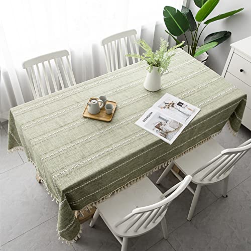 Tovaglia Moderna in Cotone e Lino Tessuto da Ricamo con Frange Copritavolo Rettangolare 110x170 cm Tovaglie Rettangolari Eleganti Lavabile per Cucina, Picnic all'Aperto al Coperto Verde Oliva