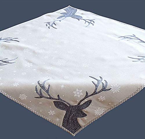 Tovaglia quadrata in poliestere, 85 x 85 cm, grigio chiaro, bianco, blu ghiaccio, ricamata, decorazione natalizia, centrotavola da tavolo