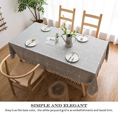 Tovaglia rettangolare in tessuto jacquard, decorazione per la casa, in cotone e lino, con nappine, per sala da pranzo, cucina e giardino, Lino Cotone, Grigio - Griglia 1., Rectangle 55x78in(140x200cm)