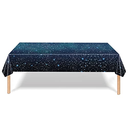 Tovaglia spaziale 2 pezzi, tovaglia usa e getta stellata per la notte, tovaglia rettangolare in plastica, con stelle spaziali, decorazione per feste di compleanno, 137 x 274 cm