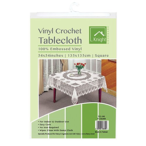 Tovaglia in vinile bianco con pizzo crochet PVC vintage attractive & elegante tovaglia di lino, Vinile, White, 54" x 54'' Square
