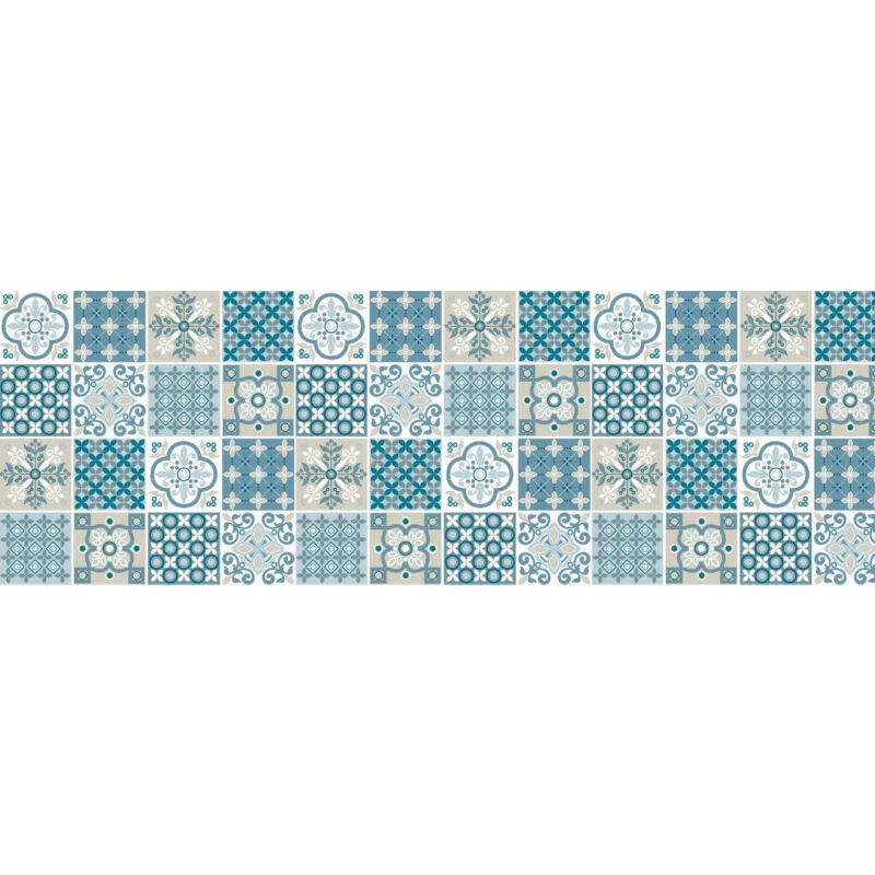 PVC stampato accoppiato a tessuto di polipropilene. Altezza 140 cm. Fantasia patchwork azzurro. Rotolo da 20 m. L'offerta ed i prezzi si riferiscono a 20 pz. per confezione