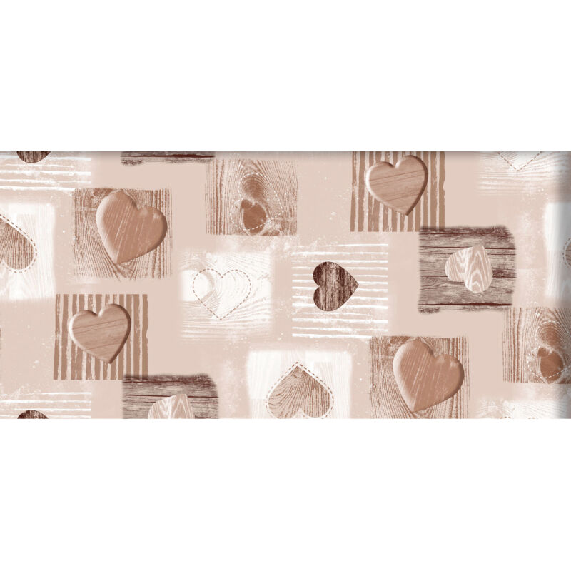 PVC stampato accoppiato a tessuto di polipropilene. Altezza 140 cm. Fantasia Country Love marrone. Rotolo da 20 m. L'offerta ed i prezzi si riferiscono a 20 pz. per confezione