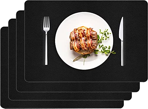 Tovaglietta in Pelle, Set di 4 Tovagliette Lavabile Impermeabili Place Table, Tovagliette Resistente al Calore Antiscivolo per per tavolo da pranzo Cucina Domestica, Ristoranti e Hotel (45x30cm, Nero)