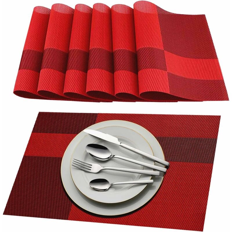 1: Contenuto della confezione: 6 tovagliette. Dimensioni del prodotto: 45*30 cm.(17,7''*11,8'') Adatto a tutti i tavoli 2: Quando la tovaglietta è macchiata, basta usare un panno umido per pulire lo sporco o lavarla sotto acqua corrente e lasciare agire asciugare all'ombra. non sbiadiscono, sono antibatterici, resistenti alla muffa, facili da riporre, possono essere arrotolati per risparmiare spazio. 3: Le tovagliette intrecciate double-face sono antiscivolo e resistenti al calore. L'efficace isolamento di queste tovagliette può arrivare fino a 100°C, proteggere la tavola senza graffi e macchie, creare un 4: Tovagliette molto belle di ottima qualità, piacevoli da usare, molto facili da mantenere perché lavabili, si sporcano non si attacca e si asciugano rapidamente. 5: per tavoli da cucina, hotel, bar, ecc. Il tavolo non è solo protetto, ma anche bello ed elegante, donando un senso di lusso.