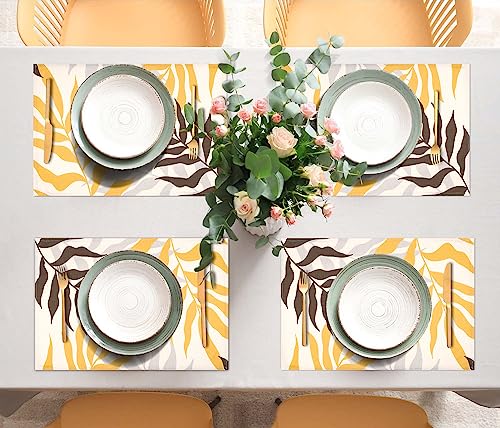 Set di 4 Tovaglietta Poliestere Tovagliette da Tavolo Giallo Marrone Grigio Foglie Tovagliette Americane Lavabili Tovagliette Resistenti Allo Sporco Impermeabile Tovaglietta per Cucina Feste 45x32cm