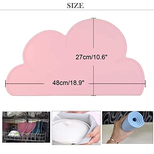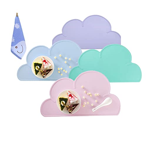 BELLO FORMA DELLA NUVOLA TOVAGLIETTE: Colori carini, design semplice, morbido, che aiuta l'appetito di tuo figlio e rende la cena un'esperienza molto più facile, positiva, divertente e felice. Il pacchetto include 2 tovagliette, 1 panno per lavare i bambini.