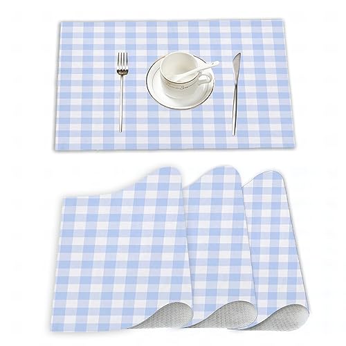 Tovagliette Americane Lavabili Plastica,Plaid a quadretti azzurro,Tovagliette Non-scivolose Resistenti al calore, Set da 4 Tovagliette per Tavolo da Cucina 30x45 cm