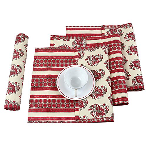 Set Tovagliette in cotone di reversibile 4 stampato 200TC indiano tavolo Déco, 13 x 19 pollici