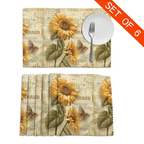Alla moda: le tovagliette sono stampate con classiche stampe di girasoli, che sarà la decorazione perfetta per il tuo tavolo da pranzo e aggiungerà un po' di vitalità al tuo tempo di pranzo.
