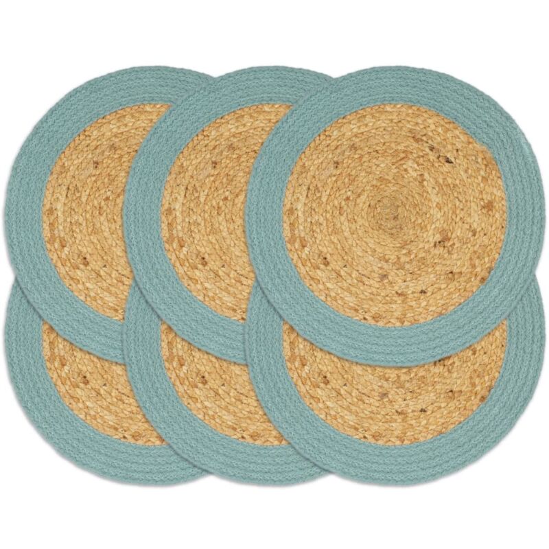 Le nostre tovagliette lavorate a mano aggiungeranno un elemento unico alla vostra cucina. Realizzate al 70% in iuta e al 30% in cotone, queste tovagliette da tavolo sono morbide al tatto e facili da pulire. Realizzate a mano, quindi ogni pezzo è unico! La consegna include 6 tovagliette. Si prega di notare che potrebbero verificarsi leggere variazioni di colore a causa della natura artigianale del prodotto. La consegna è casuale, garantendo l'esclusività e l'individualità del prodotto. Colore: Naturale e verde Materiale: juta e cotone Diametro: 38 cm Morbido e confortevole Lavorato a mano Ogni pezzo è unico La consegna include 6 tovagliette Materiale: Cotone: 30%, Iuta: 70%