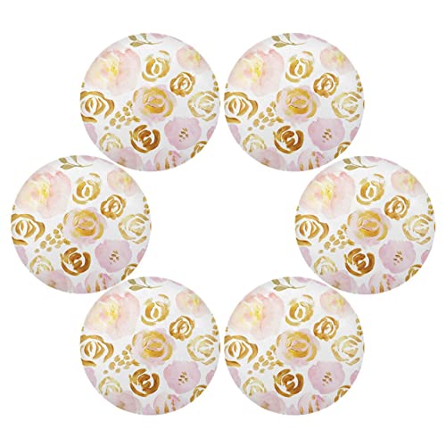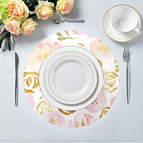 Set di tovagliette rotonde con fiori dorati rosa, antimacchia e antigraffio, antiscivolo, lavabile, tovagliette da pranzo da 39,1 cm