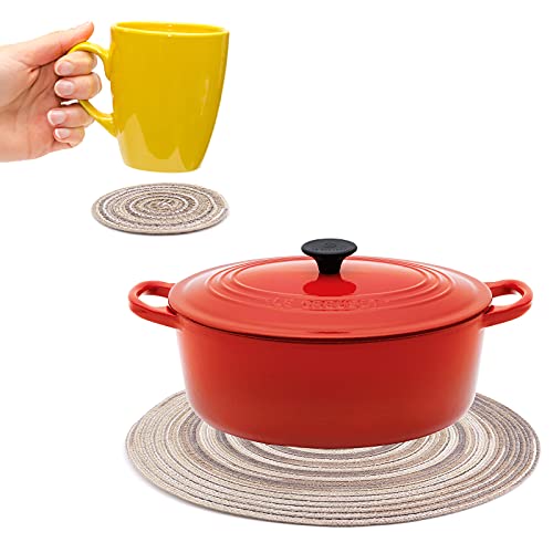 Materiale: le nostre tovagliette da fattoria presentano un robusto design intrecciato e una silhouette rotonda, un isolamento durevole, resistente al calore e riutilizzabile, che può essere molto ben protetto sul tuo tavolo