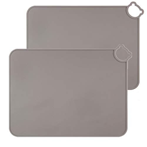 Tovagliette in silicone per bambini, tovagliette lavabili in lavastoviglie, tappetini da viaggio portatili per bambini, set di 2 (2 Grigio)