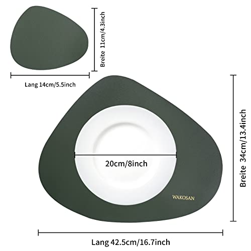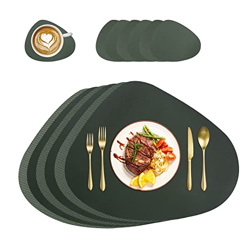 Tovagliette e sottobicchieri in pelle, resistenti al calore, set da 6 tovagliette lavabili, decorazione da tavolo, rotonde, facili da pulire, tovagliette per cucina, set da pranzo (verde)