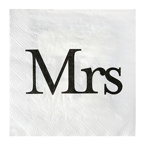 Set 20 pz Tovaglioli Bianchi di Carta 33 x 33 cm con Scritta Mrs Ideali per Feste Post Matrimonio con gli Amici - Donna Sposa Mr & Mrs