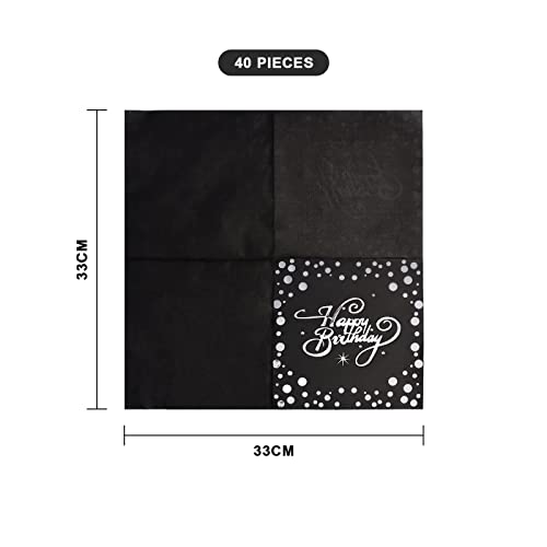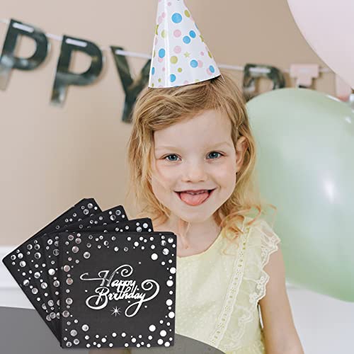 Tovaglioli di Buon Compleanno, 40pcs Tovaglioli di Compleanno in Argento Nero, Tovaglioli di Carta, Tovaglioli di Compleanno per la Decorazione della Festa di Compleanno delle Ragazze dei Ragazzi