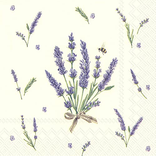 Tovaglioli di carta color panna, motivo: lavanda, 20 pezzi, 3 veli, 25 x 25 cm