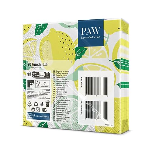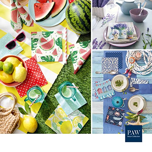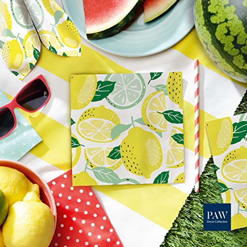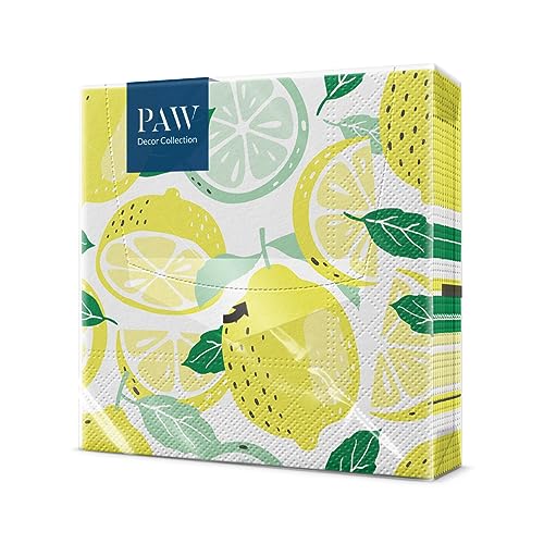 PAW - Tovaglioli di Carta Colorati (33 x 33 cm) I 20 Pezzi I Tovaglioli Compleanno I Motivi Con Frutta, Limoni I 3 veli I Tovaglioli di Carta Decorati per Compleanni e Feste - Tasty Lemons