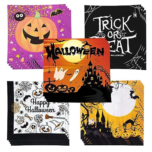 Tovaglioli di carta di Halloween, 100 tovaglioli di carta usa e getta, per feste di Halloween, 5 disegni a tema Halloween