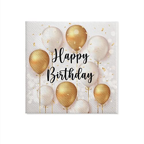 PAW - Tovaglioli di compleanno (33 x 33 cm) I 20 pezzi I feste, compleanni, celebrazioni I tovaglioli di carta motivo a palloncini - oro, bianco I decorazioni per la tavola I Birthday Gold Celebration