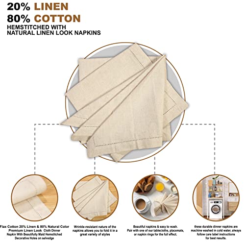 Set di 12 tovaglioli, di stoffa Flax Cotton with Hemstitch