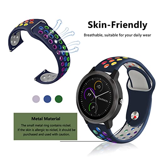 ToVioc 20mm Sportivo Cinturino Compatibile con Garmin Venu 2 Plus/GarminMove Sport, Elegante, Traspirante, Cinturino in Silicone Arcobaleno per Garmin vivoactive 3 /Garmin vivoactive 3 Music - Blu