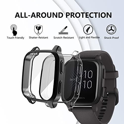 ToVioc [2 Pezzi] Custodia Full Protezione Compatibile con Garmin Venu Sq/Venu Sq Music, [Antiurto] [Anti-Graffio], Shell con Pellicola Protettiva per Garmin Venu Sq Music/Venu Sq - Nero & Trasparente