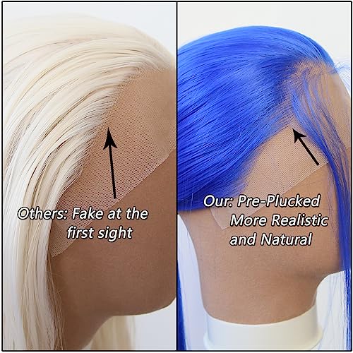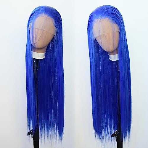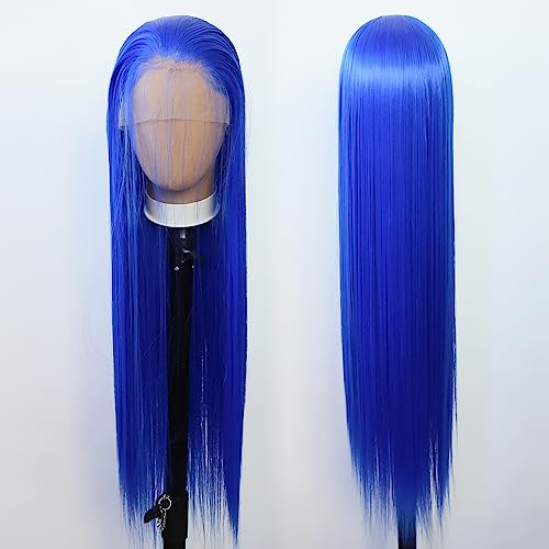 Towarm, parrucca sintetica lunga e dritta, con pizzo frontale, per donna, colore lavanda, parte centrale, senza colla, fibra ad alta temperatura, legata a mano, uso quotidiano (61 cm, blu brillante)
