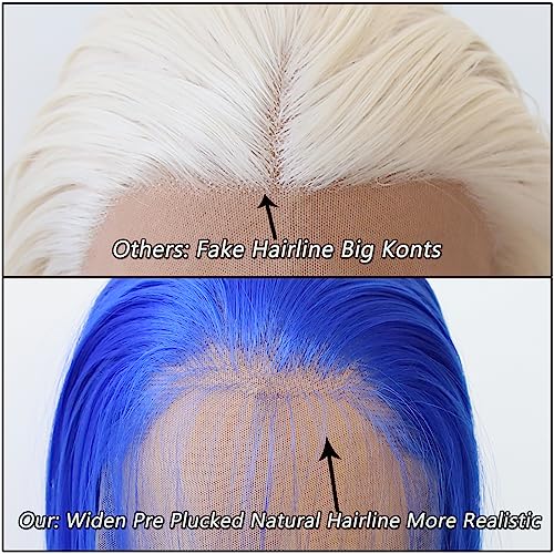 Parrucca sintetica con pizzo blu pre-pizzicato densità naturale allargare l'attaccatura dei capelli più realistica, parrucca sintetica con pizzo frontale in pizzo da 33 x 8,9 cm
