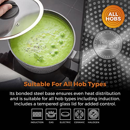 Base in acciaio incollato: fornisce una distribuzione uniforme del calore per ottenere migliori risultati di cottura ed è adatto a tutti i tipi di piano cottura