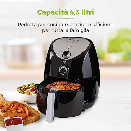 CAPACITÀ DI 4,3 LITRI: la friggitrice ad aria di dimensioni familiari con una grande capacità di 4,3 litri ti consente di servire abbastanza porzioni per andare intorno all'intero tavolo