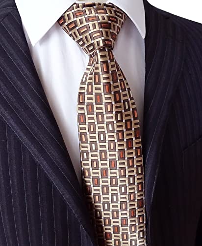 Towergem Extra Lunga Cravatta Oro/Marrone Geometrico Uomo XL Tessuti Jacquard Cravatta 63"
