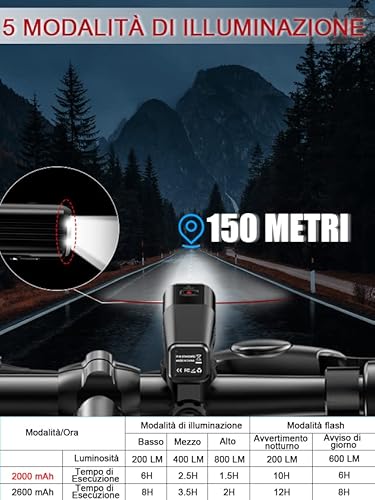 ✅Alta luminosità e 5 modalità di illuminazione - Il luce da ciclismo towild BR800 ha un'alta luminosità di 800 lumen, che offre una guida più sicura sia di giorno che di notte. Il faro ha 5 modalità di illuminazione regolabili. Una sola pressione per passare da 200 lumen in basso, a 400 lumen in mezzo, a 800 lumen in alto. Doppio clic per passare dalla modalità lampeggiante notturna (200 lumen) a quella diurna (600 lumen).