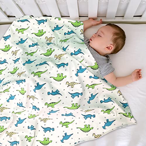 LAT LEE AND TOWN 3 pezzi Coperta fasciata per bambini Fascia per neonato 100% cotone Ricezione Coperte Stoffa ruttante Copri passeggino per ragazzi e ragazze 35" x 35" (verde+dinosauro)