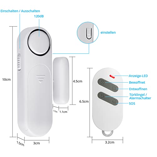 【 Campo di Controllo più Lungo】: questo kit di allarme per porta wireless è dotato di un telecomando wireless per armare, disarmare, SOS e campanello. Facilita il controllo remoto di allarmi di porte e finestre fino a 300 metri. Può essere utilizzato anche come fermaporta, allarme per la porta della piscina, per il garage o per la porta scorrevole.