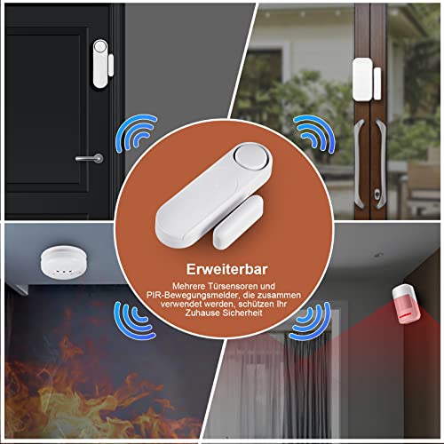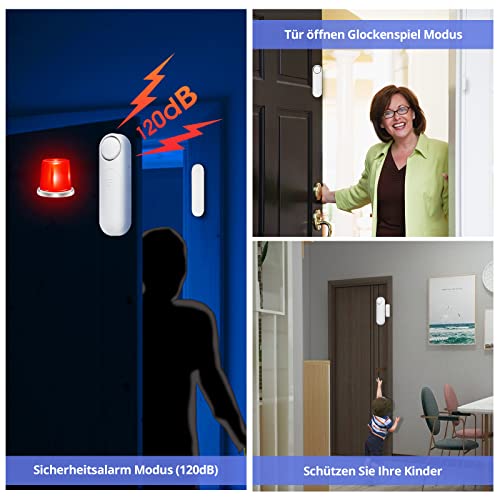 TOWODE Allarme Porta, Antifurto Casa Wireless 120dB Allarme Senza Fili Porta Finestra Sensore di Contatto con Telecomando 3 Modalità Allarme Porta per casa, Bambini, Negozio di Sicurezza