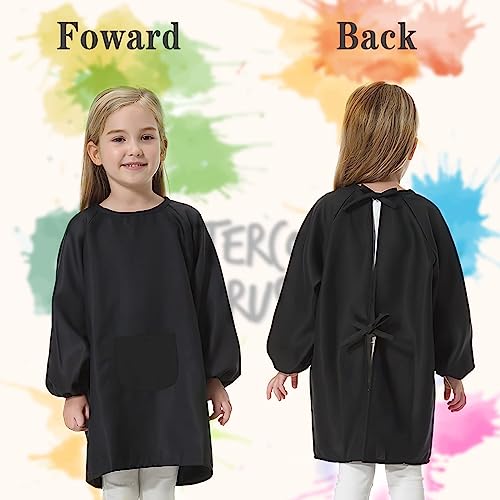 Towviy Grembiule per Pittura Bambini, Regolabili Grembiule da Artigianato Neri per Ragazzi Grembiule da Pittura per Bambini Impermeabile con 3 3D Adesivi DIY, per 7-12 Anni