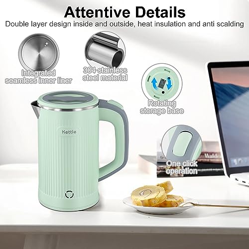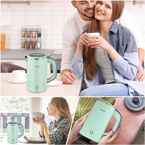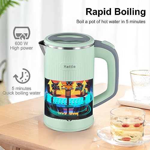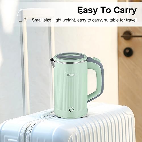 Towwoo Bollitore Piccolo 800 ml, 600W Bollitore Elettrico da Viaggio, Mini Bollitore Silenzioso in Acciaio Ebollizione Rapida, Bollitore Portatile da Campeggio per Tè Caffè Latte (verde)